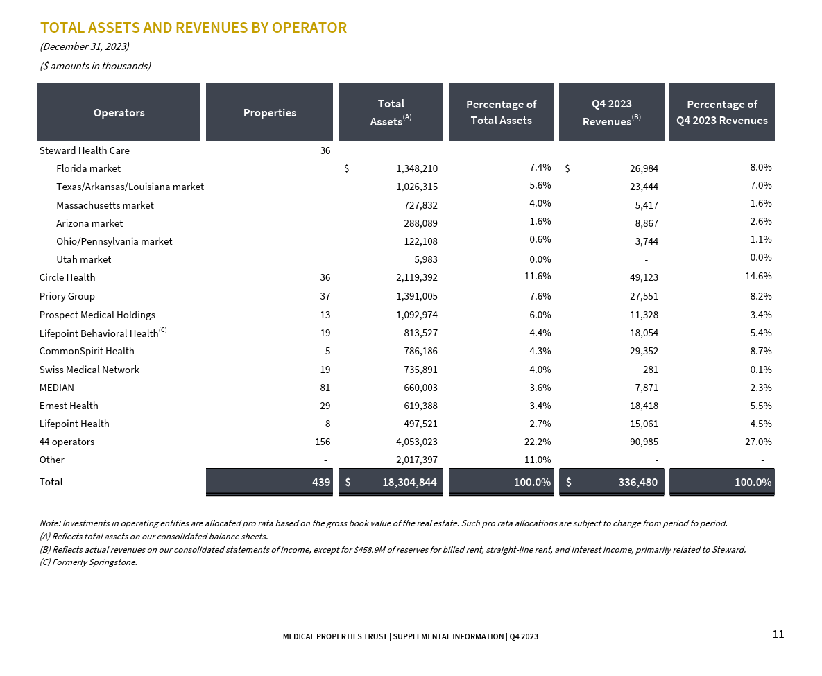 Medical Properties Trust Asset And Revenue By Debtor (Medical Properties Trust Supplemental Information Fourth Quarter 2023)