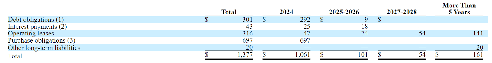 I studied carefully the company's long-term obligations. The company has a $400 million senior secured term loan B due September 2024. The interest rate, linked to the term SOFR, varies depending on the base interest rate. MRC and its affiliates guarantee the loan, backed by asset liens. Prepayments are required for asset sales and certain insurance proceeds. The $750 million global ABL facility, with specific guarantees and borrowing bases, provides additional flexibility. Given the total amount of inventory and assets, I am not really concerned about the total amount of obligations.