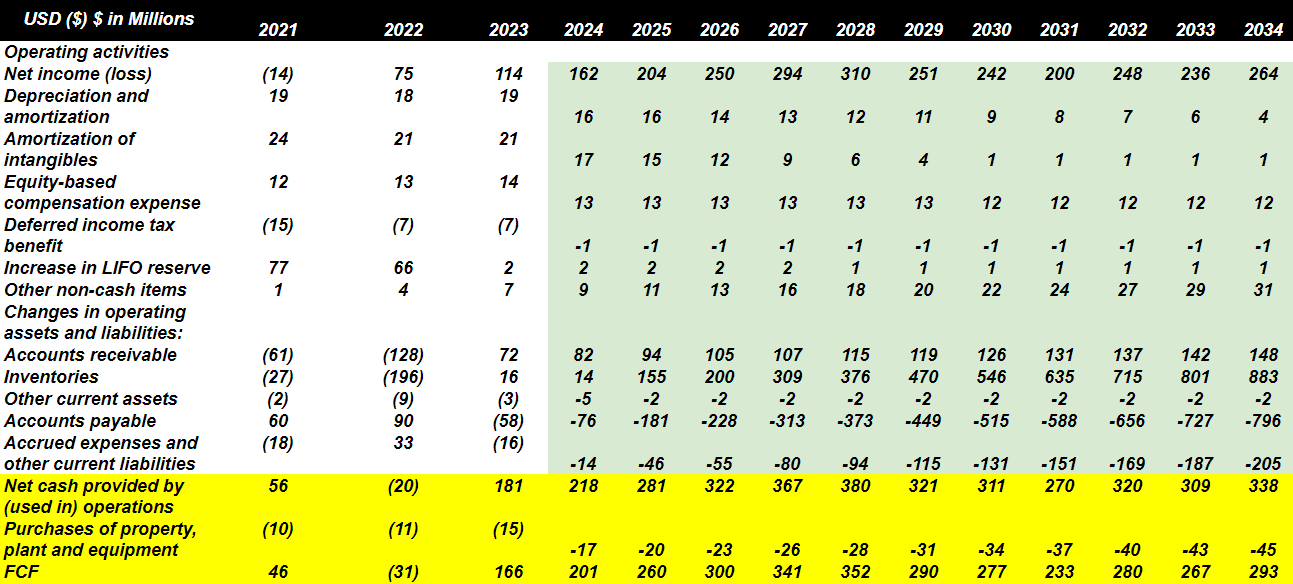 For the design of my cash flow forecasts, I took a look at previous changes in working capital, changes in inventory, as well as capital expenditures, and other items included in the cash flow statements. I believe that my figures are quite conservative.