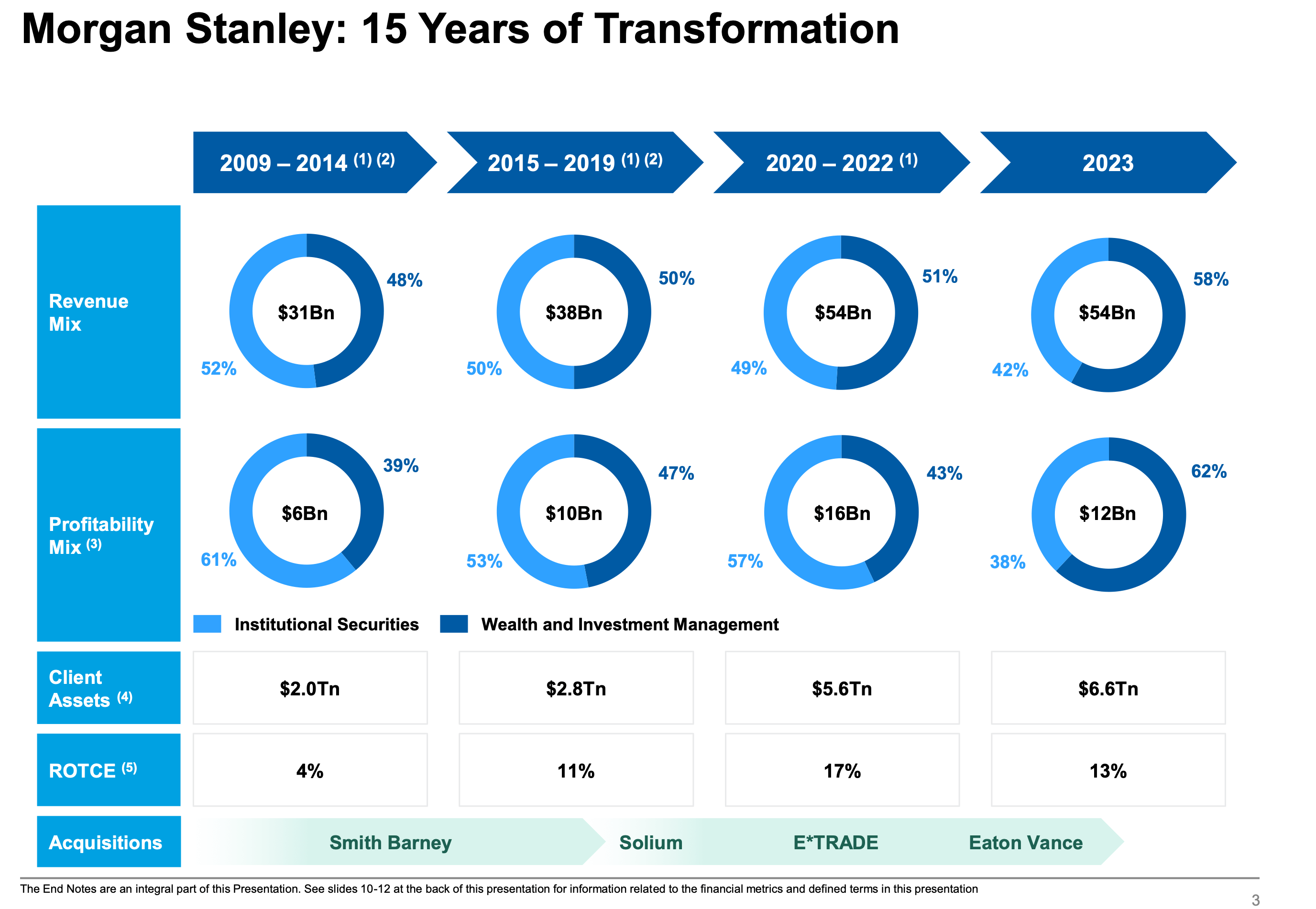 In fact, the key to understanding MS and its value proposition is to see how it has transformed over the past decade from a mainly banking firm to a wealth and investment management one.