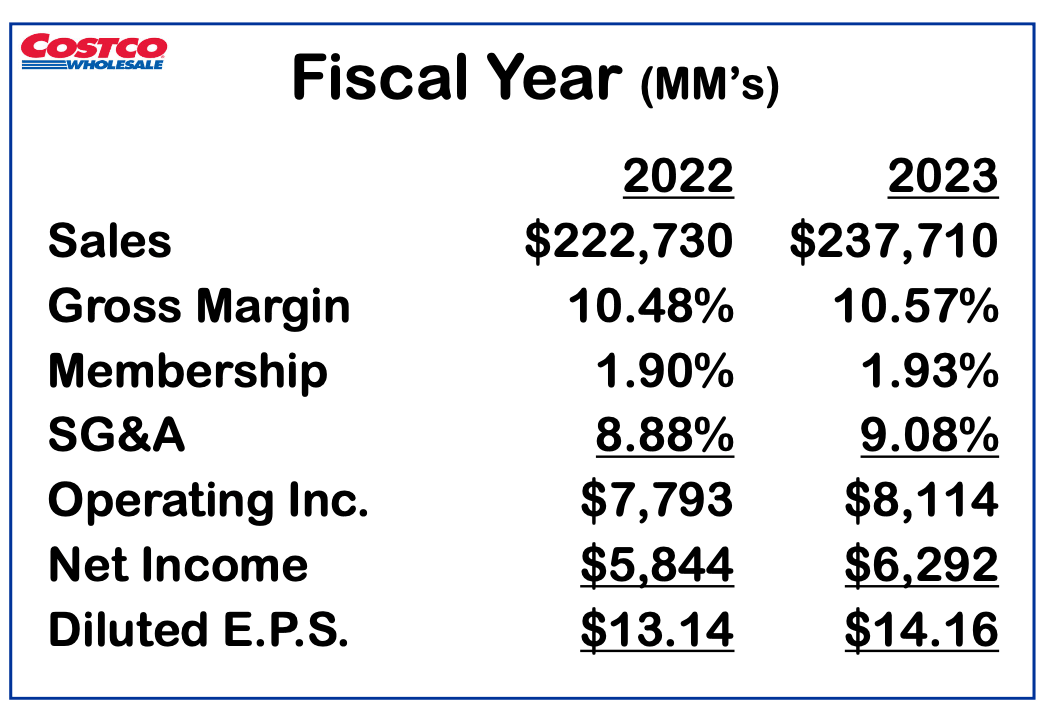 The rate of growth is slowly declining as Costco gets bigger and bigger. No doubt, maintaining a high percentage growth rate means that the nominal growth is exponential. As a company gets bigger, it gets tougher to keep growing.