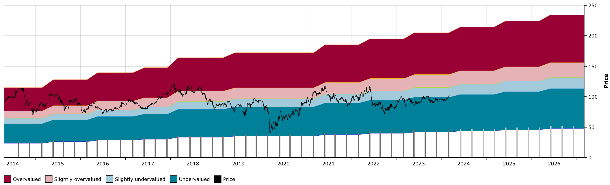 But buying in 2020 at $60 (let's ignore the bottom at $34, because we don't need to get the bottom) would result in 13.6% annual returns, before the dividend, which would have brought returns up to 20% per year.
