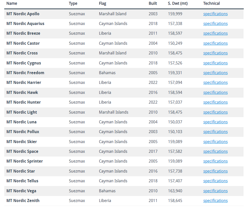 NAT has 20 Suezmax tankers at an average fleet age of 12.6 years. The table below from the company’s website shows the NAT’s fleet.
