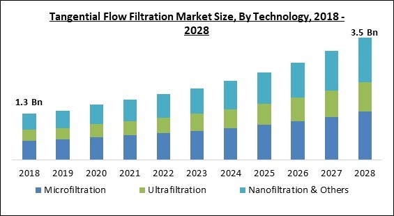 The Global Tangential Flow Filtration Market size is expected to reach $3.5 billion by 2028, rising at a market growth of 10.9% CAGR during the forecast period.