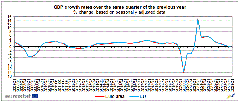 Investment thesis: Last year was a horrible year for Europe's economy. It experienced near zero economic growth for all of 2023, and this year seems to bring more of the same. The IMF recently lowered its projections for the EU, and I am sure more downward revisions are coming. There is simply nothing to drive the EU economy forward. Things might look even worse if it were not for warmer winters, ironically arguably due to climate change, which helped Europe to drastically reduce natural gas consumption since 2022, thus avoiding the risk of having to disrupt and further destroy industrial demand.