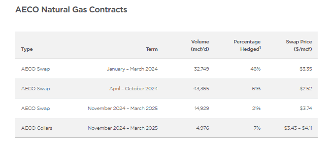 Obsidian does have natural gas hedges covering around 52% of its 2024 natural gas production, and these hedges may have around US$6 million in positive value at current strip prices.