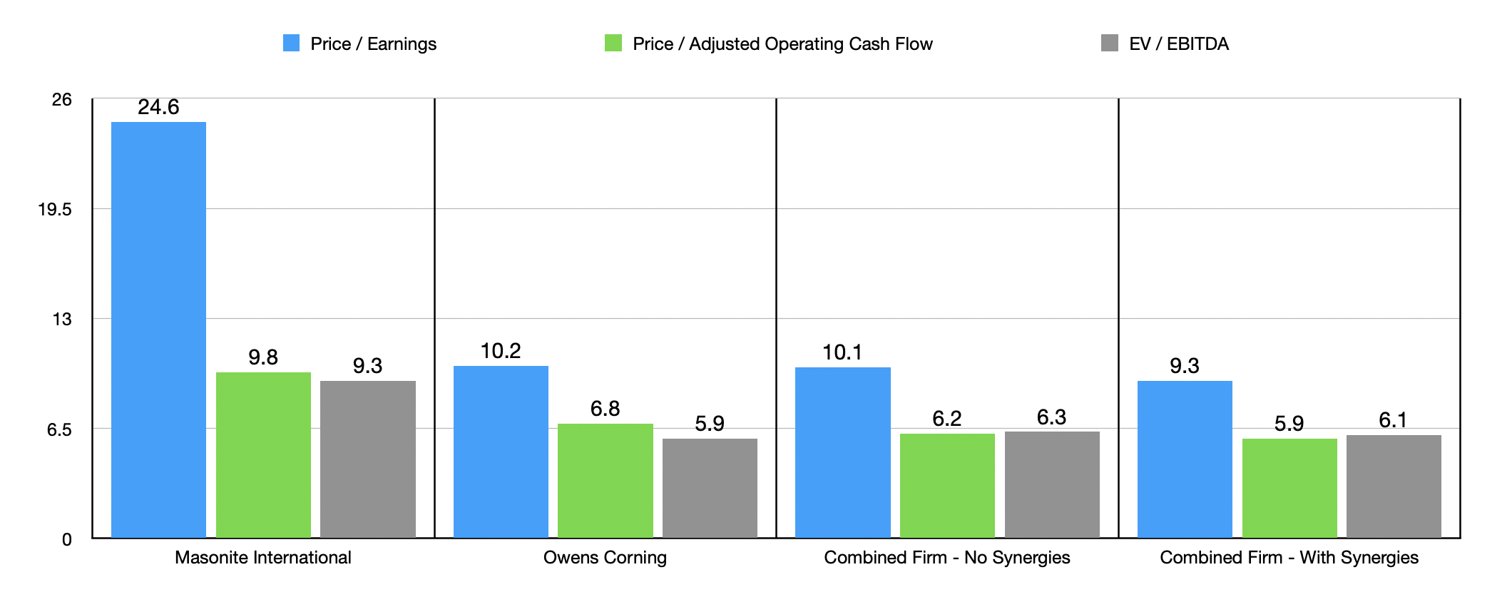 As things stand, it looks as though Owens Corning is paying a bit of a premium for Masonite International, but only in relation to where its shares currently are. On an absolute basis, both companies look quite cheap, and I think that it's a bit surprising that shareholders of Masonite International would sell off their business on such terms.