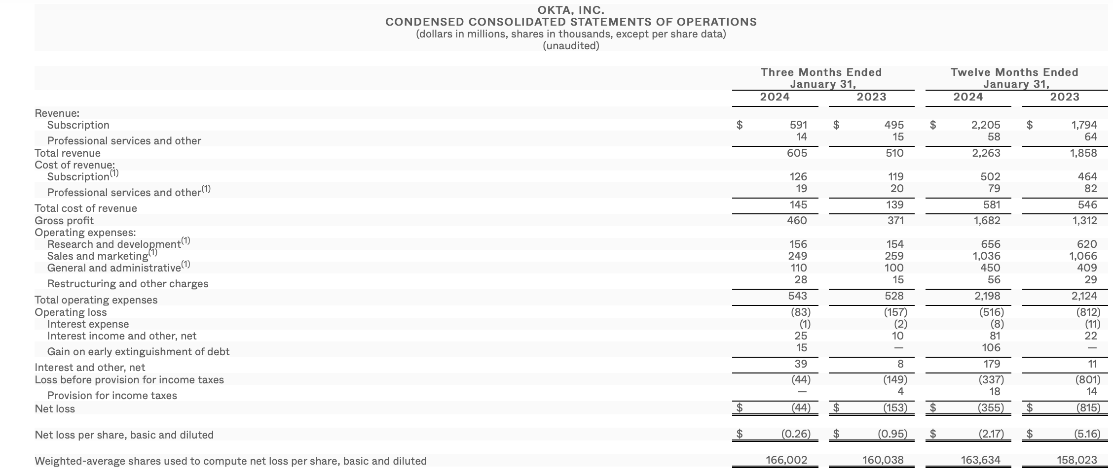 Let's now go through Okta's latest quarterly results in greater detail. The Q4 earnings summary is shown below:
