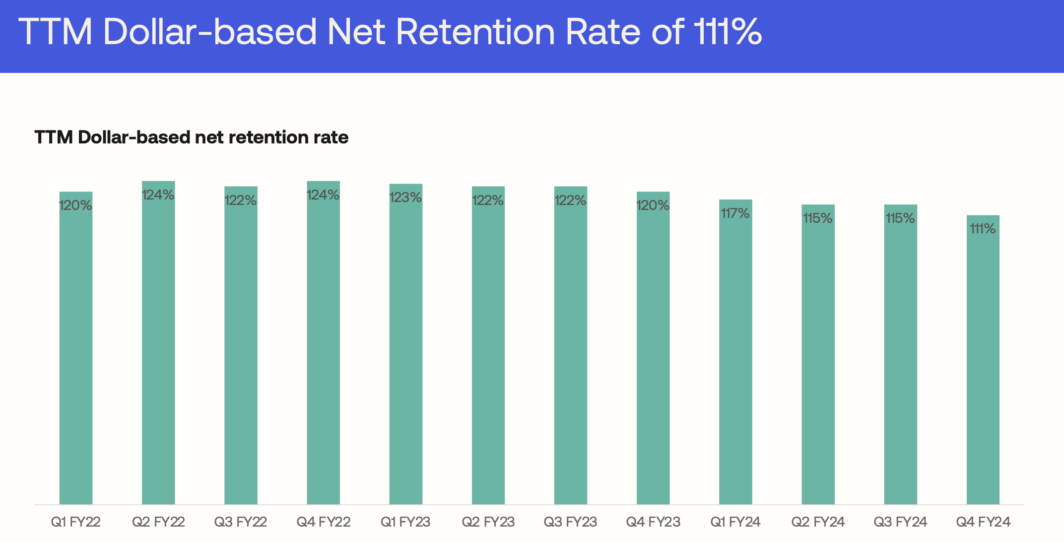 We hope that these focused sales teams will be able to reverse the recent trend of both slowing customer adds and lower net retention rates, but this remains to be seen as we move through FY25.