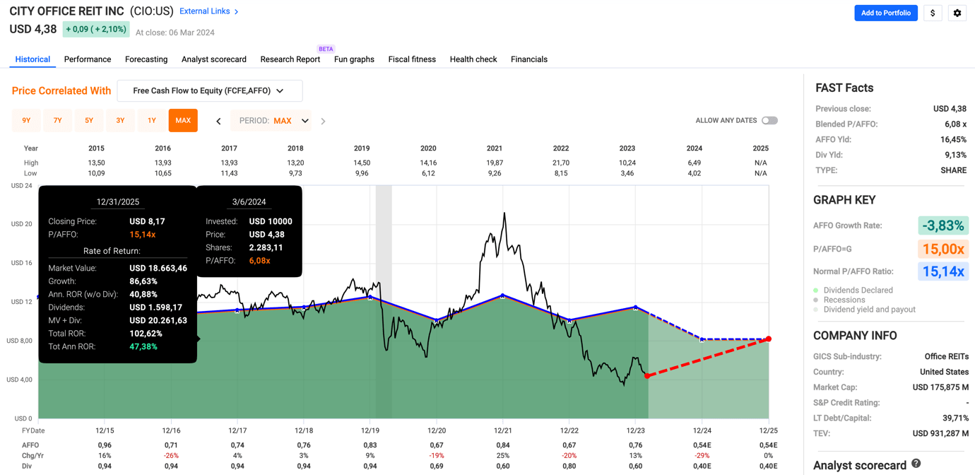 If the Fed were to achieve a no-landing followed by gradual rate cuts, City Office REIT could soar in the years ahead.