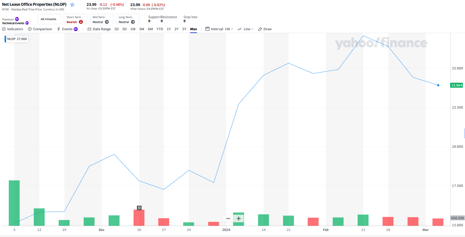 “While the Company paid a dividend in January 2024 of $0.34 per share, it does not intend to pay regular dividends going forward, except as may be necessary to maintain its REIT qualification.” – NLOP 2023 10-K.