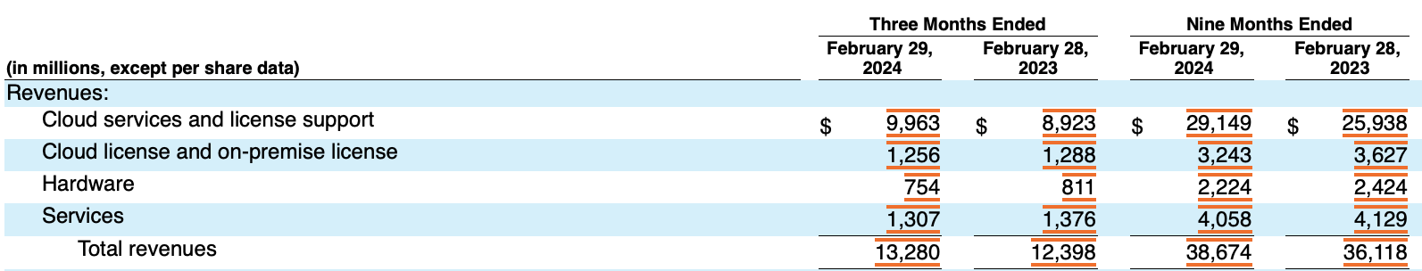 Then, it's Oracle infrastructure technologies, which is part of Oracle's Cloud Services and license support. According to Oracle, this represented around 53% of the total segment's revenue for 2023. Therefore I will maintain this same margin in my projection.