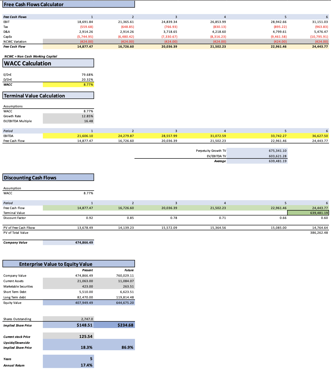 After doing a DCF model, I arrived at a fair price of $148.51 which is an 18.3% upside from the current stock price of $125.54. The model also suggested a future price for 2029 at around $234.68 which implies 17.4% annual returns throughout 2029.