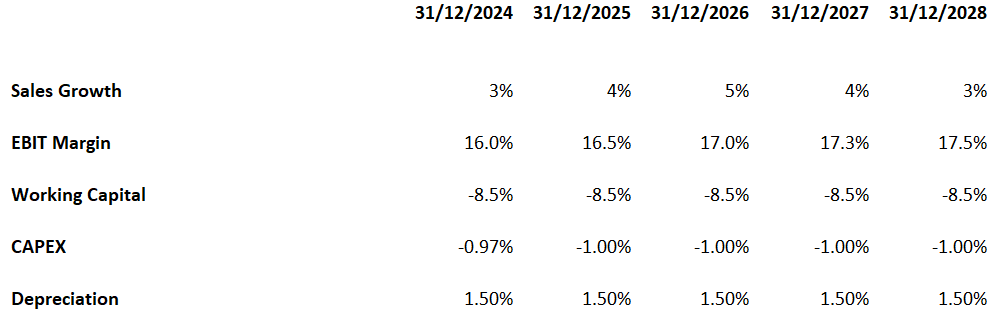 Assumptions for DCF (author own math)