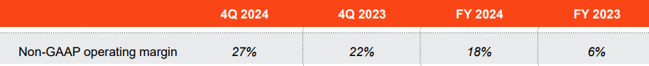 What you see here is that fiscal Q4 2024 ended with 27% non-GAAP operating margins, a 500 basis points expansion from the same period a year ago.