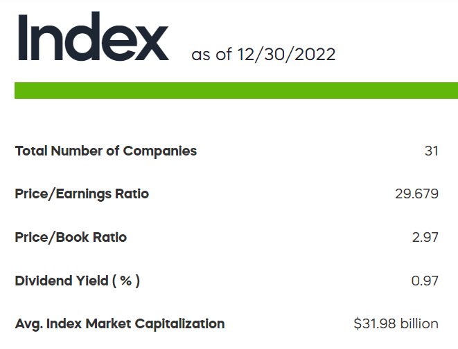 Of course, we can use traditional multiples taken separately instead of looking at composites. So with the weighted-average market cap of around $46.5 billion, PAWZ has an earnings yield of less than 2%, as per my calculations. It should also be noted that the fund's website shows an index P/E of ~29.7x as of 30 December 2022, which translates into a ~3.3% earnings yield.