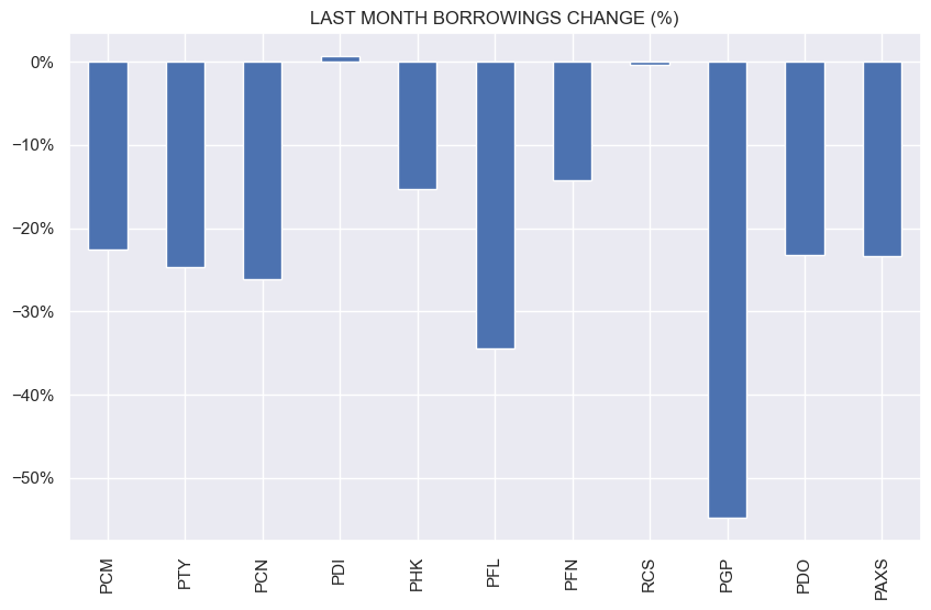 While all but one fund cut borrowings, PGP shed by far the most amount, cutting by more than half.