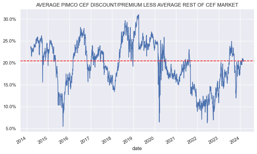 Relative to the rest of the CEF space, taxable PIMCO funds are trading at a 20% premium - roughly in the middle of their historic 10-30% range.