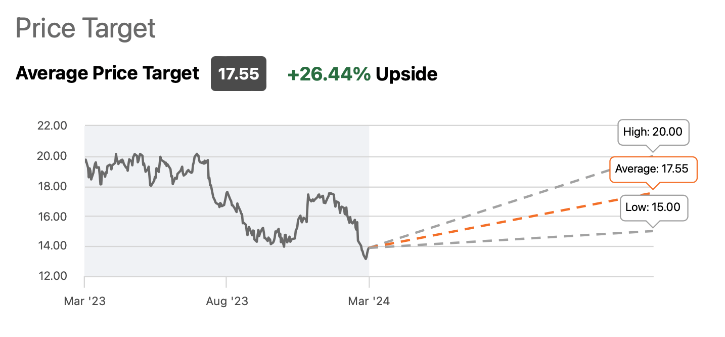 Wall Street (12 analysts) have price targets from $15-$20, with an average of $17.55.
