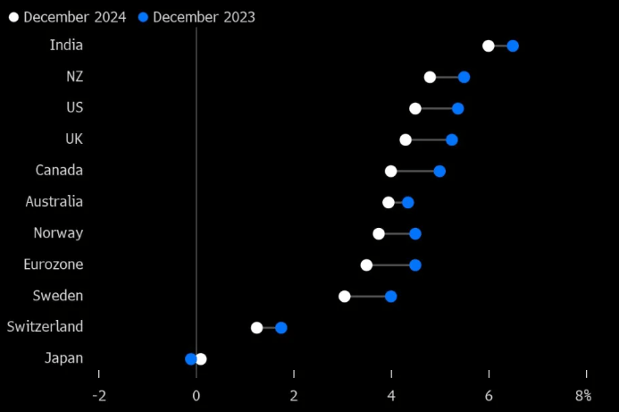 The practical implication is that other central banks are likely to be more aggressive, or at least on-par, with the Federal Reserve. This will maintain strength in the USD and continue to challenge non-US debt holdings. For specifics, look at where the benchmark US rate is set to finish 2024 compared with other major global economies: