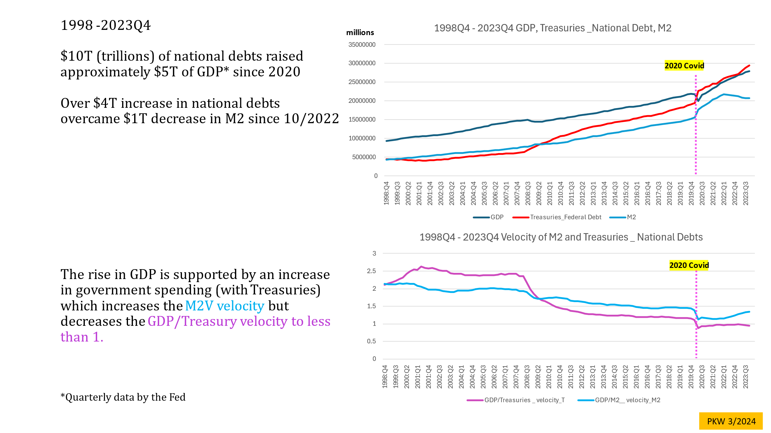 The relaxation of the concept about the usage of money supply allows for comparisons about the velocity of M2, GDP/M2, and Treasuries.