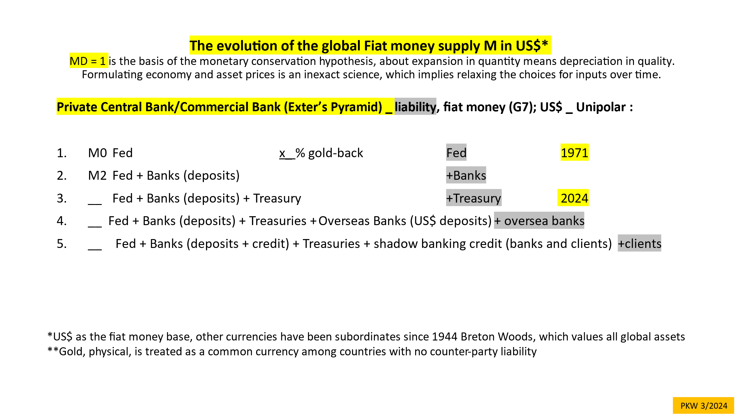 Below is a diagram of the origin of the current US$-based fiat monetary system, which came from the past money of gold and commodities.