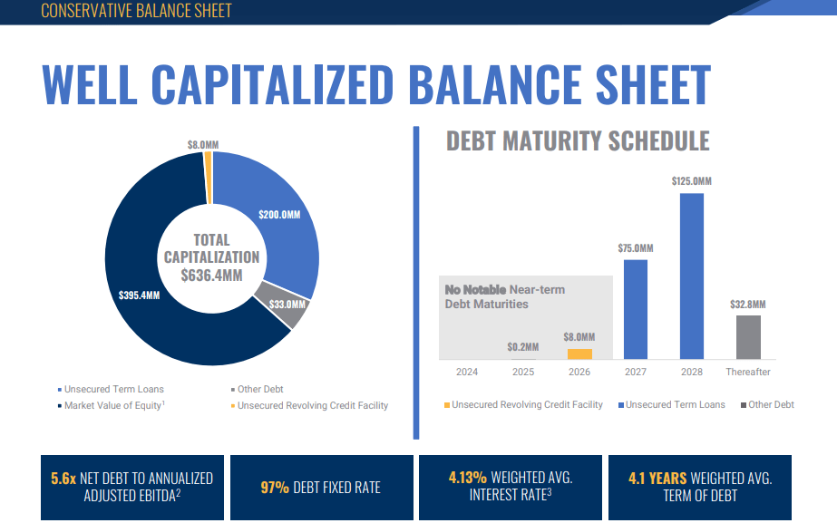 Plus, 97% of its debt is fixed rate with a weighted average interest rate of 4.13% and a weighted average term to maturity of 4.1 years.