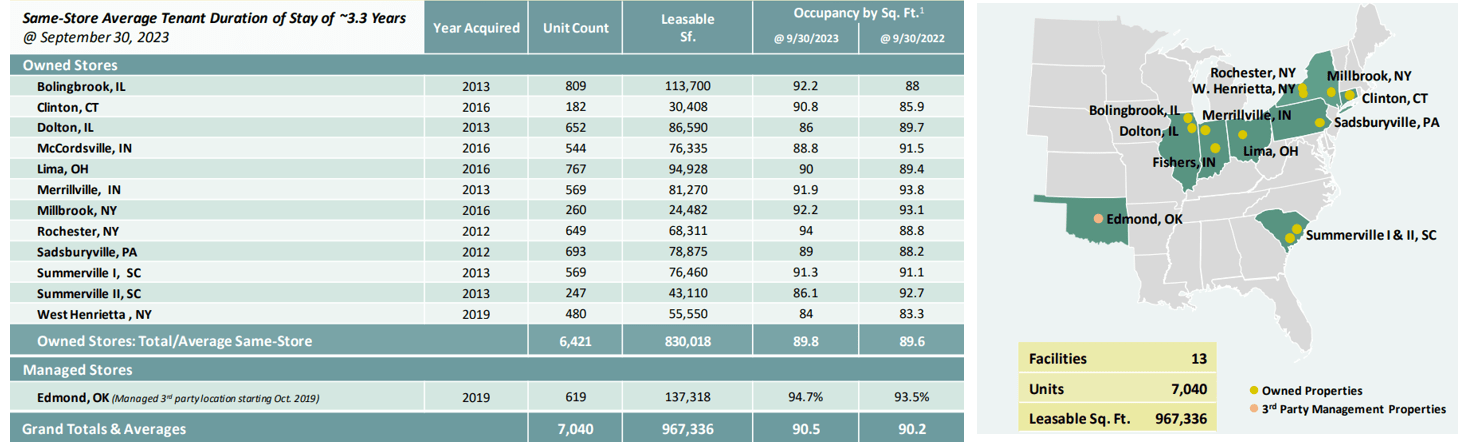As of the end of the third quarter in 2023 the company reported a portfolio occupancy of 90.5%, and same-store average tenant stay of roughly 3.3 years.