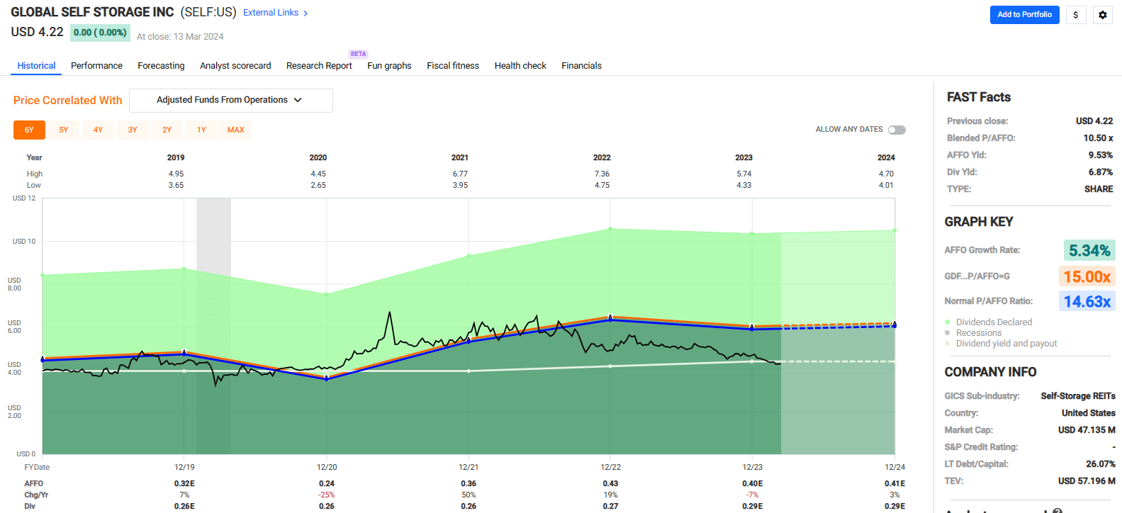 Since 2019, Global Self Storage has delivered an average adjusted funds from operations ("AFFO") growth rate of 5.34% and an average dividend growth rate of 2.24%.