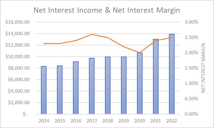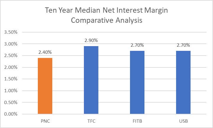 With that being said PNC Group has achieved a median net interest margin over the previous ten years of 2.4%.