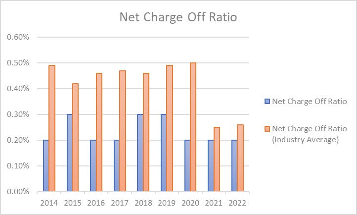 From my perspective, an additional crucial indicator for evaluating the loan book’s quality is the net charge-off ratio. As illustrated in the following data, during the last decade PNC has observed their net charge-off ratio ranging between 0.30% and 0.20%. When we put this alongside the banking industry, PNC Group from 2014, to the last twelve months PNC Bank has consistently kept their Net Charge Off Ratio below the industry average. This indicates that PNC has been successful in handling credit risk and debt collection when compared to other banks. One possible reason for this performance could be PNCs focus on industrial lending, which involves thorough credit assessment procedures. This disciplined approach to managing credit risk showcases a risk management framework positioning PNC in a position for financial stability and resilience, against potential credit losses.