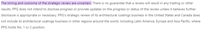 Despite my optimism based on this company’s dividend and growth metrics, I am cautious to invest here at the moment because I foresee a bleak midterm outlook following the company’s review of the North American Architectural coatings which I will discuss in the section that follows.