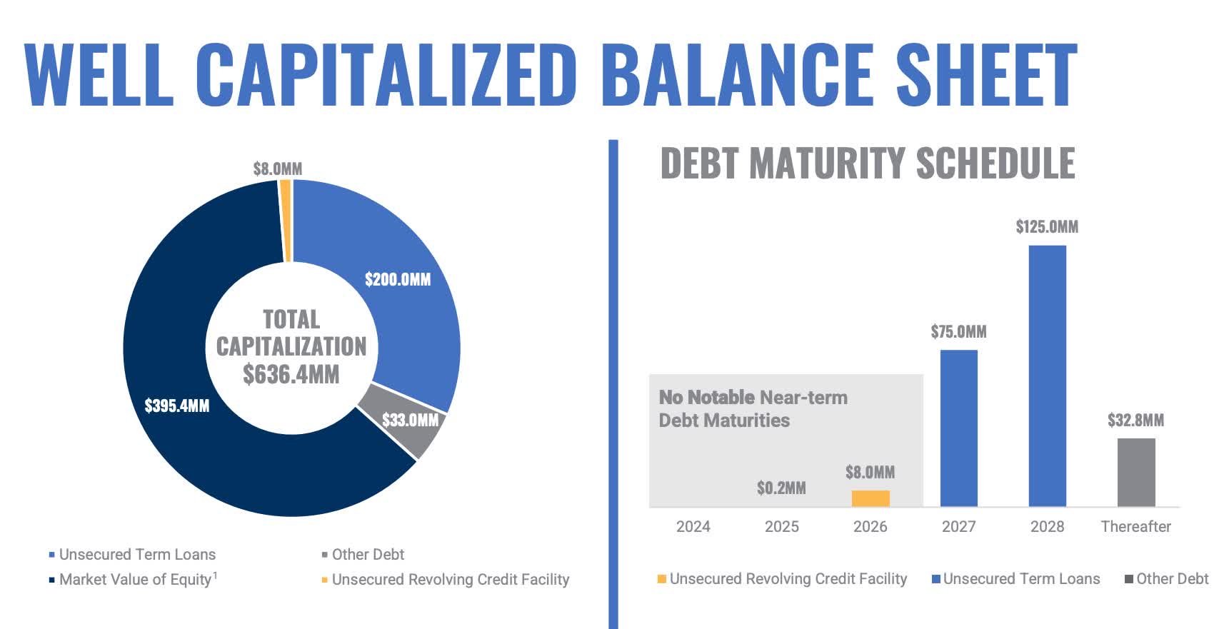 One way REITs can also support their dividend is by having a strong balance sheet. With ample liquidity and no debt maturities to worry about in the short term, REITs can pay their dividend from cash on hand if need be. PSTL's debt maturities are well-laddered with none maturing until 2027.