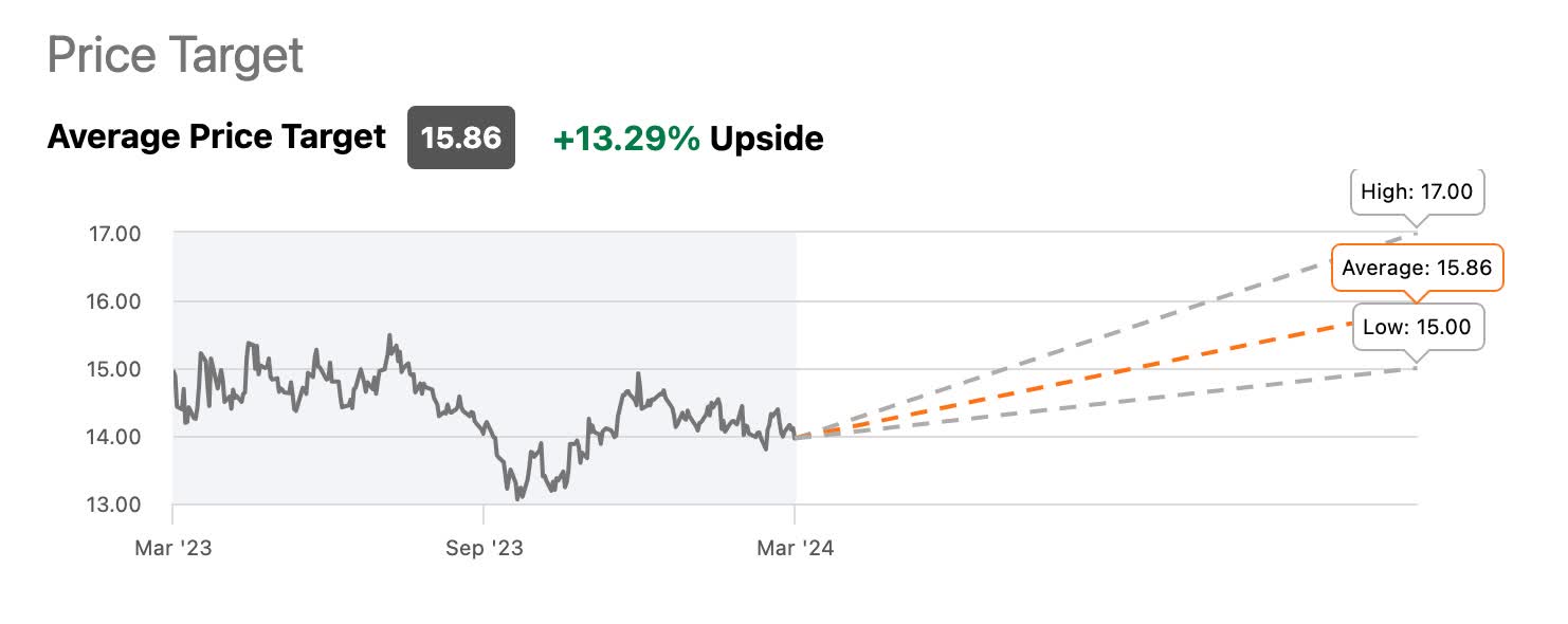 Of course, this is all speculation and dependent on which way interest rates move in the coming months. This is also in-line with analysts' price target of roughly $16. Additionally, investors get a near 7% yield delivered while they wait for potential double-digit upside.