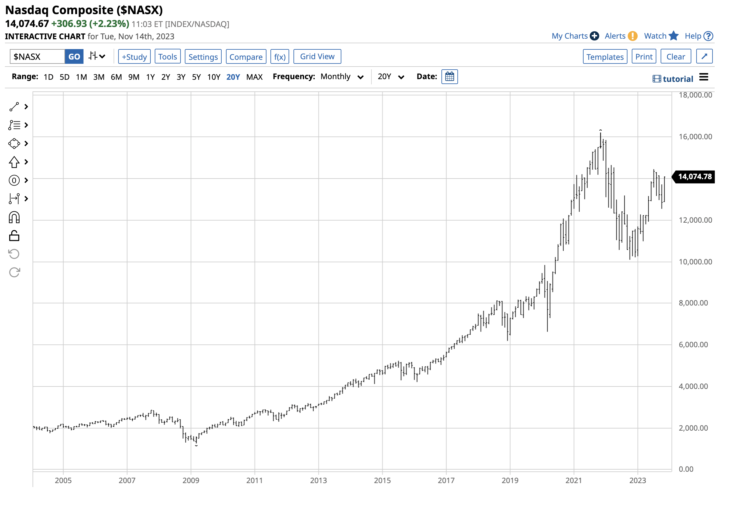 Long-Term NASDAQ Composite Chart (Barchart)