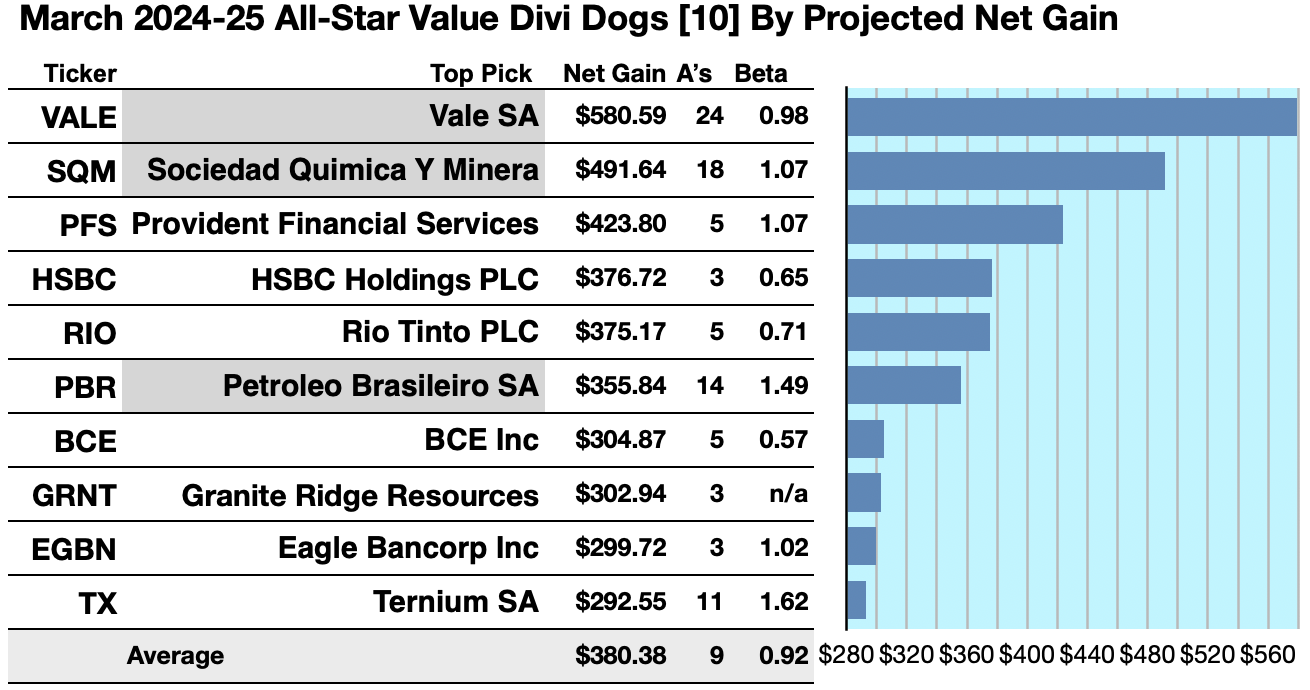 Actionable Conclusions (11-20): Ten Top Stocks By Yield Are The March Dogs of The All-Star-Value Pack