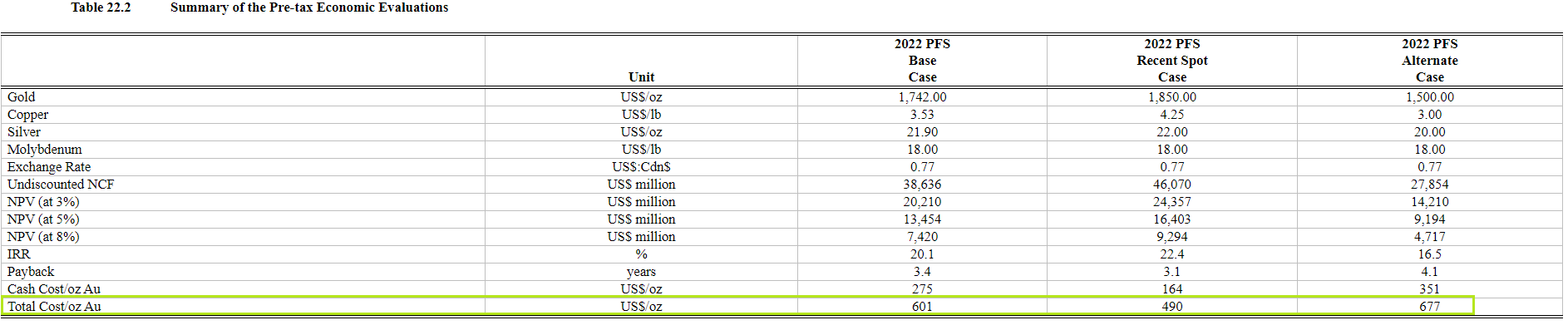 Total Cost Estimates Under KSM's PFS 2022 - Source: NI 43-101 Technical Report