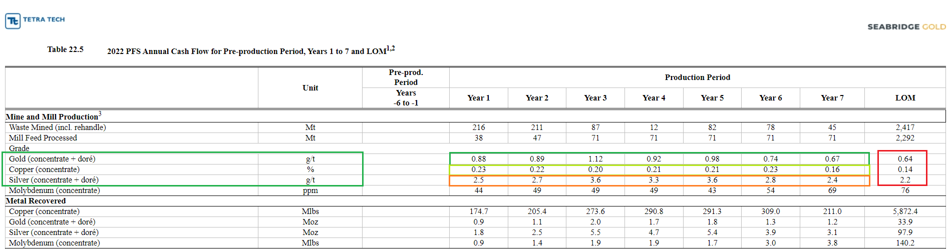 KSM Metal Grades During First 7 Years of Production - Source: NI 43-101 Technical Report