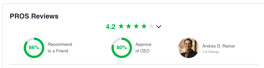 Having joined the company in 1999 before it went public in 2007, current CEO Andres Reiner knows the company inside out and has formed an experienced management team and a diverse board of directors. Their current Glassdoor rating reflects the direction that he has taken with the company: