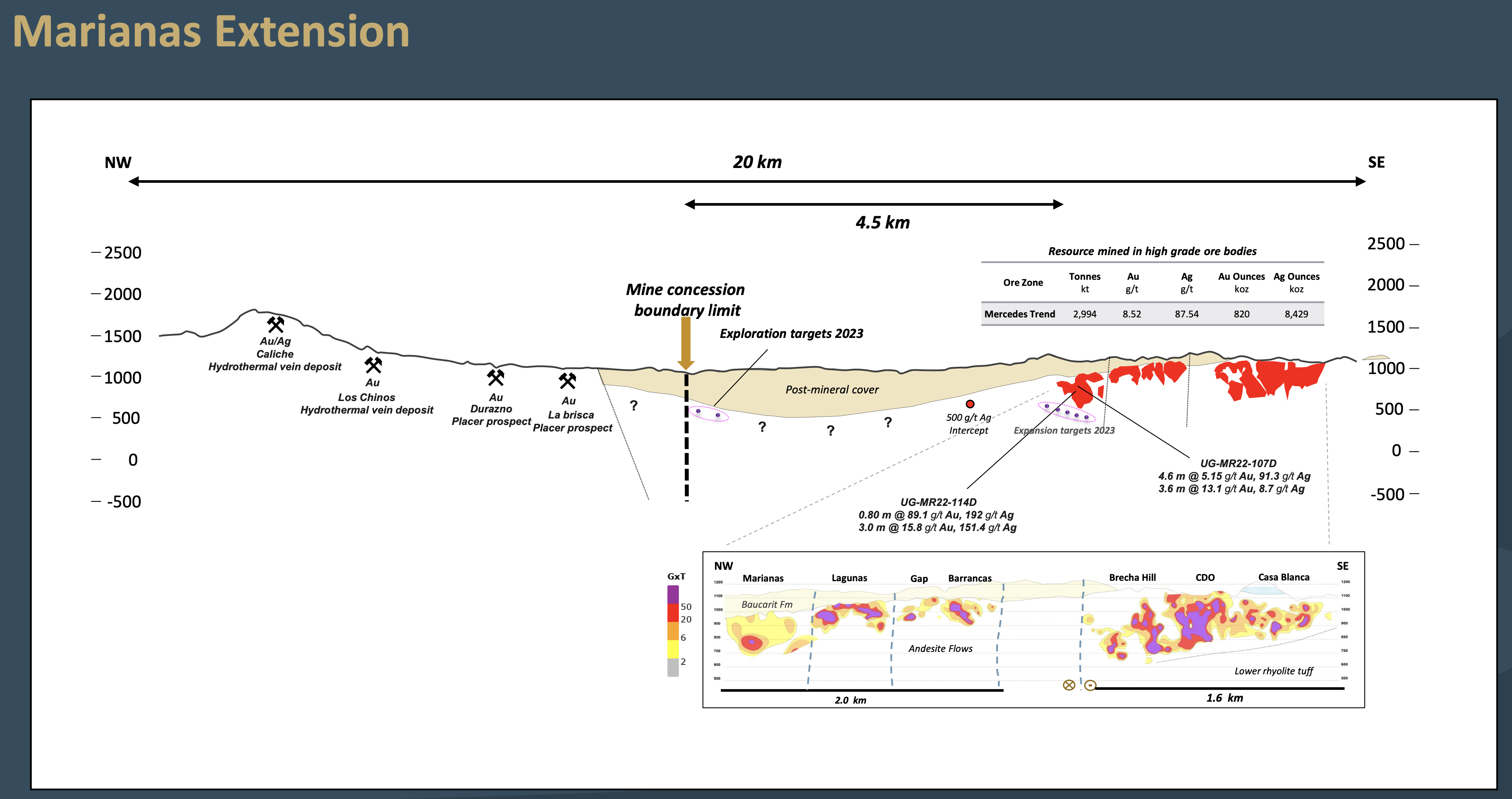 Marianas could potentially extend much further, and there is another 4.5km before it hits the concession boundary limit. There are also a host of deposits on this trend that extend past the land package and might indicate it's one long continuous system.