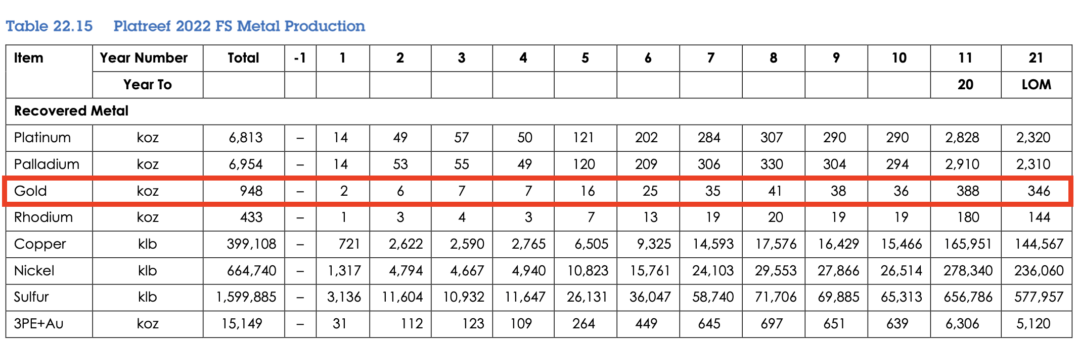 Slated for the end of this decade, Phase 2 will result in a dramatic 5-fold increase in output, with over 500,000 ounces of 3PE+Au production annually. It is during this phase that gold production will average ~35,000 ounces per year.