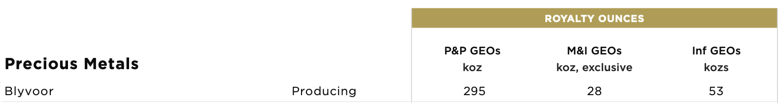 It's difficult to value Blyvoor and estimate potential annual GEOs to Sandstorm. Sandstorm's stream ounces from its portion of reserves amount to 295,000 GEOs, but at this stage, we can't assume anything close to that estimate. I would value Blyvoor at about 1/3 of the NAV Sandstorm estimates.