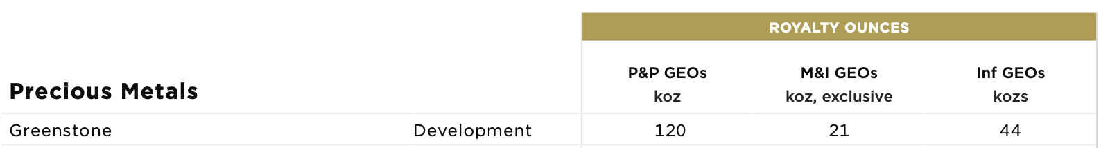 ~400,000 ounces of gold production are expected per year during the first five years of mine life, which equates to ~10,000 GEOs to Sandstorm per year, and Greenstone has a 14+ year mine life in total. It's an asset that could generate substantial free cash flow for Sandstorm.