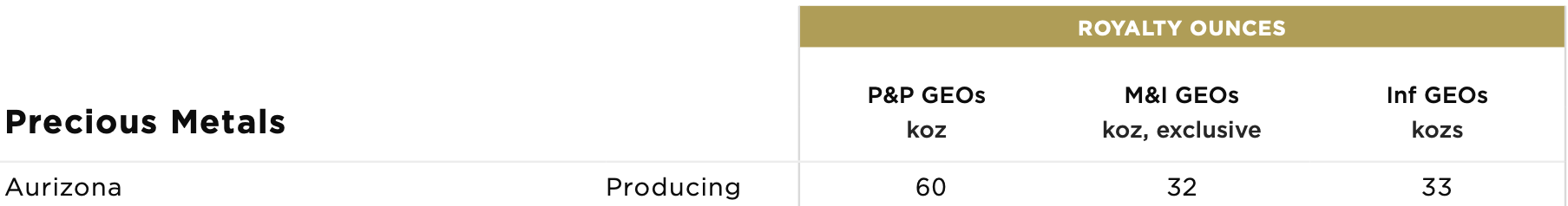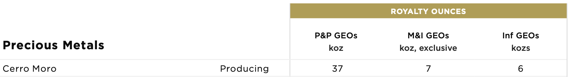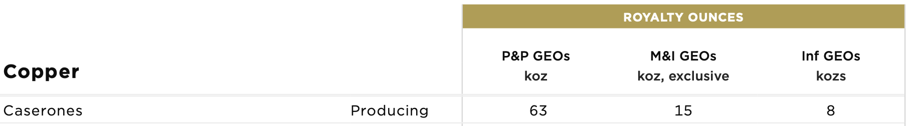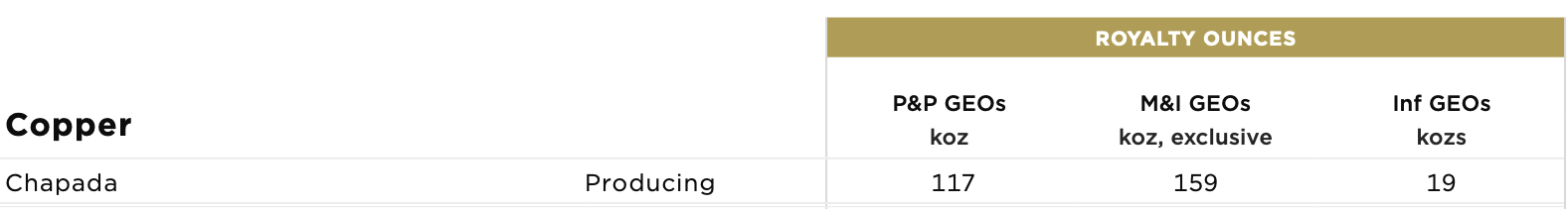 While most of the other streams and royalties discussed earlier contain more royalty ounces in the reserve category than Chapada, when you include the M&I royalty ounces, Chapada is near the top. NPV (5%) = ~US$80 million (reserves only)