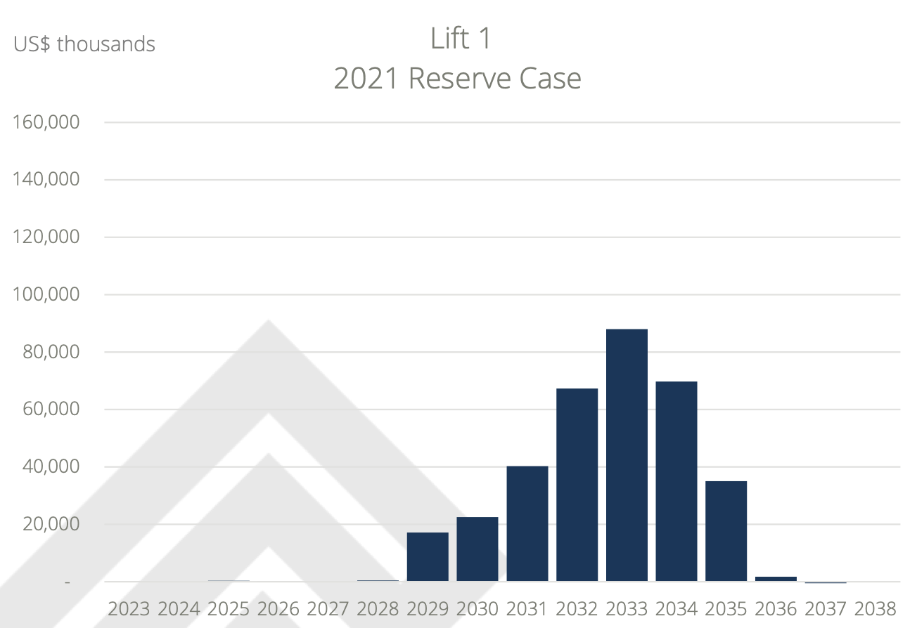 Entrée Resources (OTCQB:ERLFF) provides the following graphs, which show its portion of cash flow from Lift 1 and 2 and give SAND investors an idea of when the streams will begin to pay out.