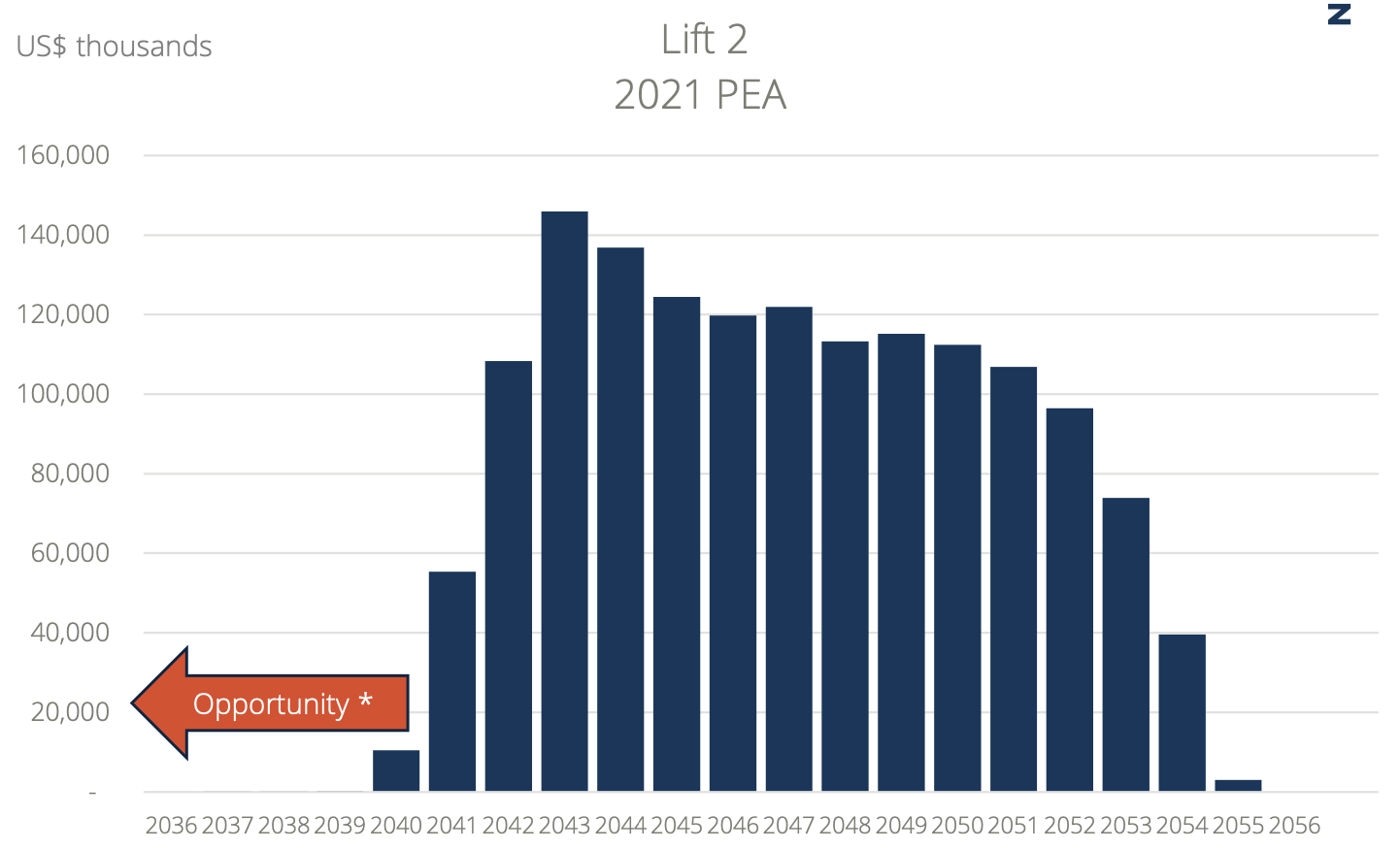 The 2020 Pre-Feasibility Study projected a mine life of 27 years at an average annual production level over the first 10 years of approximately 556 million pounds of copper equivalent, including 107,000 ounces of gold, as well as silver and molybdenum. The stream would be worth ~20,000 GEOs per year to Sandstorm during the peak production years, with high levels of GEO production continuing well past that point.