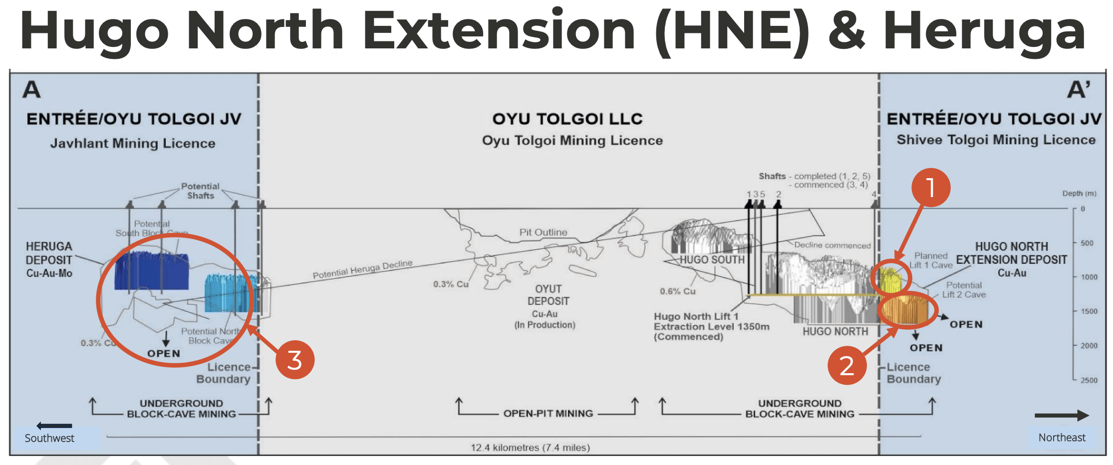 The main ore source since commercial production has been from the Oyut open pit, but now the operation has also moved underground. In the development pipeline for more than a decade, and maybe even considered a "pipe dream" by many, the Hugo North block cave is now in production. Sandstorm owns Au, Ag, and Cu streams on the extension at Hugo North — within the Entrée/Oyu Tolgoi JV boundary. The Hugo North Lift 1 extension won't be mined until later this decade, but it represents solid future growth for SAND.
