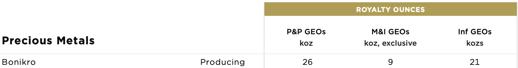 Still, the 6% stream on Bonikro means that Sandstorm will receive a healthy gold stream from this asset for at least the next several years and will participate in a good portion of the upside potential of the asset.