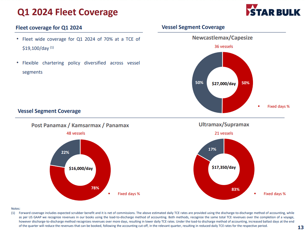 In 1Q24, SBLK took a delivery of a few vessels: two Kamsarmax and one Ultramax.