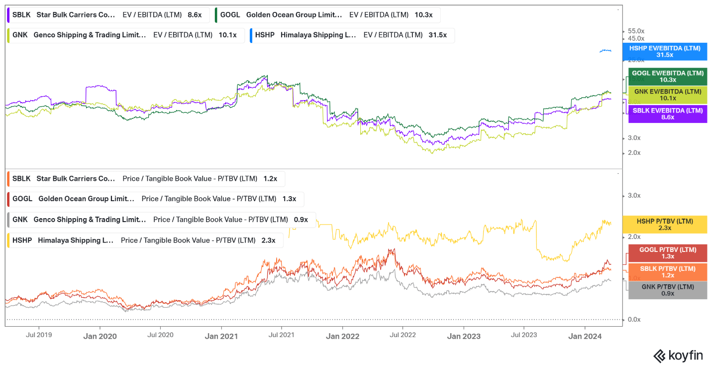 I picked Golden Ocean Group (GOGL), Himalaya Shipping (HSHP), and Genco Shipping (GNK) for comparative valuation. The reason is simple: those companies have high exposure to the Capesize segment.